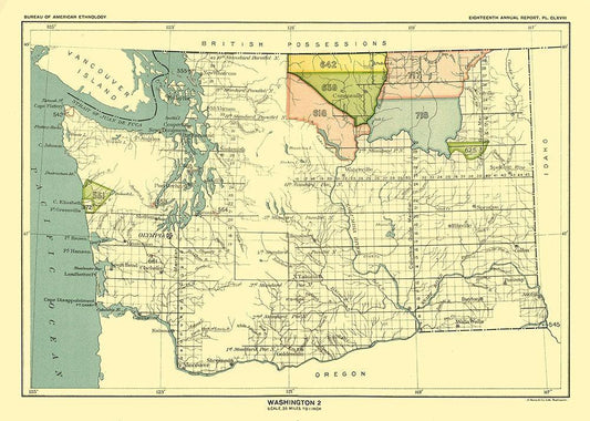 Washington, Oregon - Colton 1853 White Modern Wood Framed Art Print with Double Matting by Colton