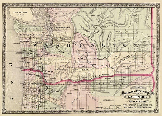 Washington Railroads and Townships - Grant 1887 White Modern Wood Framed Art Print with Double Matting by Grant