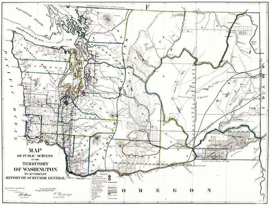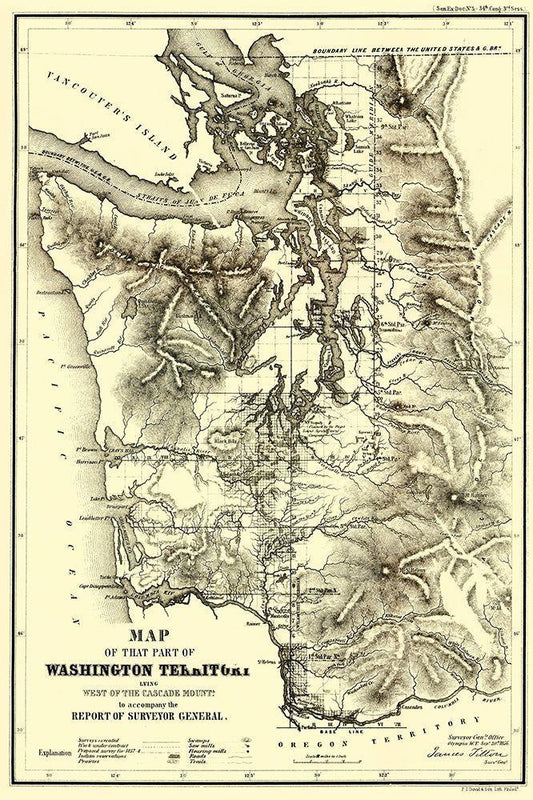 Washington Territory Public Survey - 1865 White Modern Wood Framed Art Print with Double Matting by Giddings