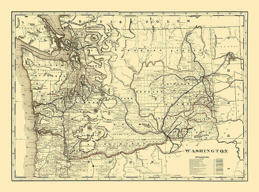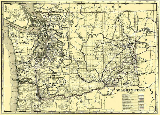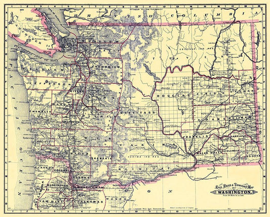 Washington Railroads - 1892 White Modern Wood Framed Art Print with Double Matting by Unknown