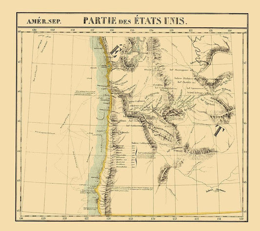 Washington, Oregon Coast - Vandermaelen 1825 White Modern Wood Framed Art Print with Double Matting by Vandermaelen