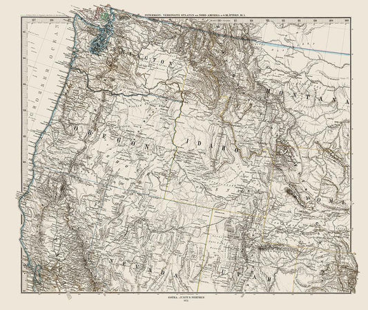 Northwest United States - Petermann 1872 White Modern Wood Framed Art Print with Double Matting by Petermann