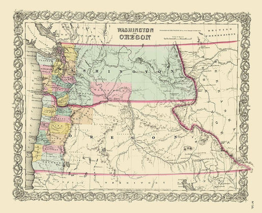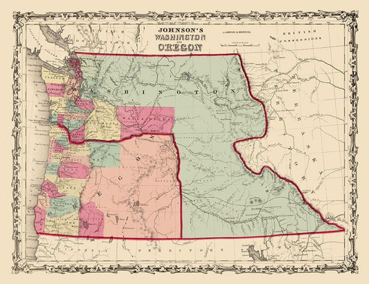 Washington, Oregon - Johnson 1860 White Modern Wood Framed Art Print with Double Matting by Johnson