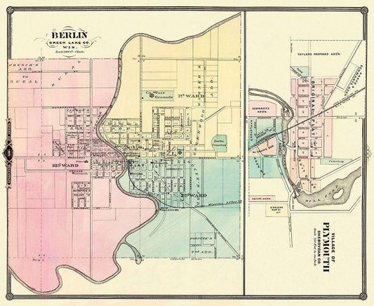 Berlin, Plymouth Wisconsin - Snyder 1878 White Modern Wood Framed Art Print with Double Matting by Snyder
