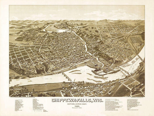 Chippewa Falls Wisconsin - Norris 1886 White Modern Wood Framed Art Print with Double Matting by Norris
