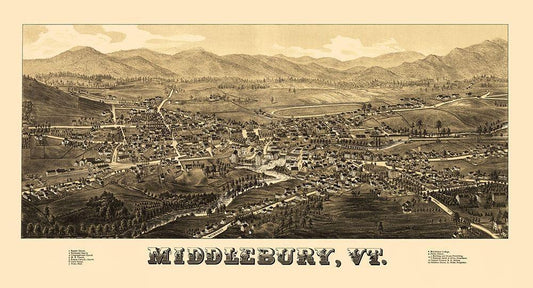 Middlebury Vermont - Burleigh 1886 White Modern Wood Framed Art Print with Double Matting by Burleigh