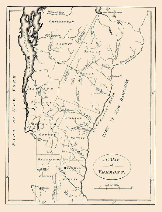 Vermont - Carey and Lea 1822 White Modern Wood Framed Art Print with Double Matting by Carey