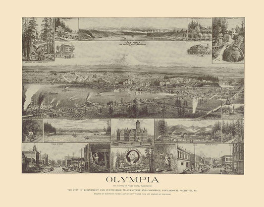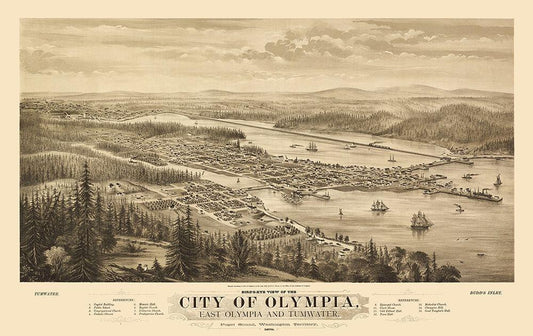 Olympia Washington - Glover 1879 White Modern Wood Framed Art Print with Double Matting by Glover