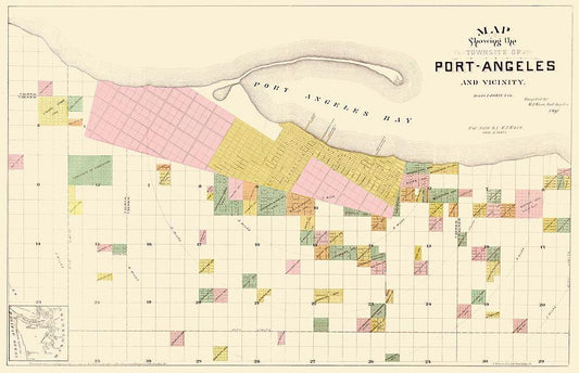 Port Angeles Washington - Ware 1891 White Modern Wood Framed Art Print with Double Matting by Ware