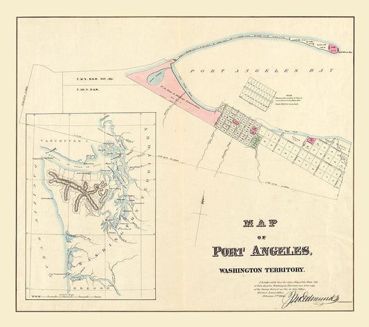 Port Angeles Washington - Edmunds 1864 White Modern Wood Framed Art Print with Double Matting by Edmunds