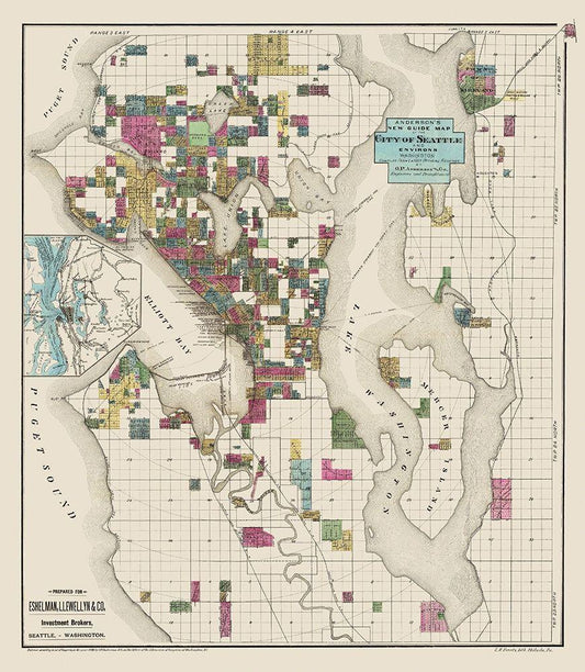 Seattle Washington Landowner - Anderson 1890 White Modern Wood Framed Art Print with Double Matting by Anderson