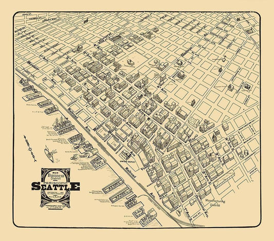Seattle Washington - Beck 1884 White Modern Wood Framed Art Print with Double Matting by Beck