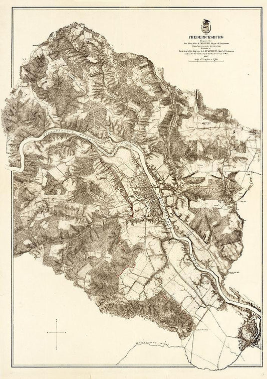 Fredericksburg Virginia - Milcher 1867 White Modern Wood Framed Art Print with Double Matting by Michler