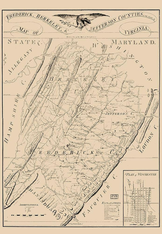 Frederick County Virginia - James 1809 White Modern Wood Framed Art Print with Double Matting by James