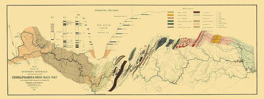Chesapeake and Ohio Railway, Showing Minerals 1872 White Modern Wood Framed Art Print with Double Matting by Maury