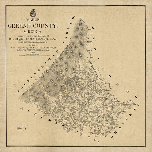 Greene County Virginia - Hotchkiss 1875 White Modern Wood Framed Art Print with Double Matting by Hotchkiss