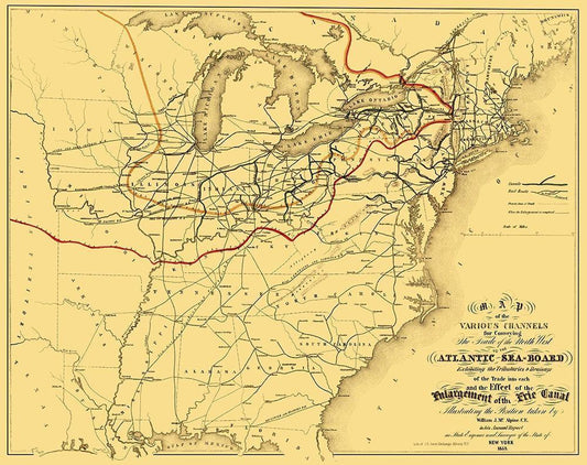 Atlantic Seaboard Trade Routes - Alpine 1853 White Modern Wood Framed Art Print with Double Matting by Alpine