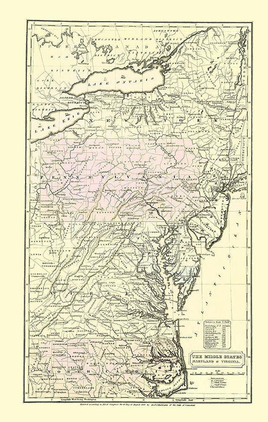 Eastern United States - Huntington 1830 White Modern Wood Framed Art Print with Double Matting by Huntington