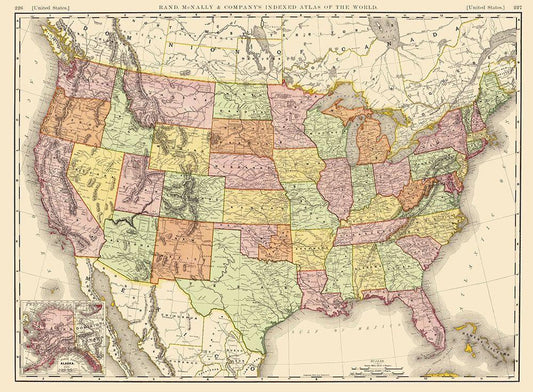 United States of America - Rand McNally 1897 White Modern Wood Framed Art Print with Double Matting by Rand McNally