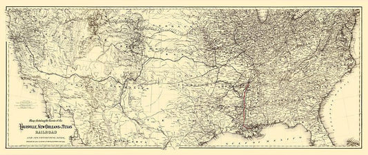 Louisville, New Orleans and Texas Railroad 1883 White Modern Wood Framed Art Print with Double Matting by Colton