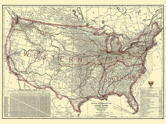 United States Transportation Lines 1921 White Modern Wood Framed Art Print with Double Matting by Rand McNally