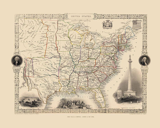 United States - Tallis 1851 White Modern Wood Framed Art Print with Double Matting by Tallis
