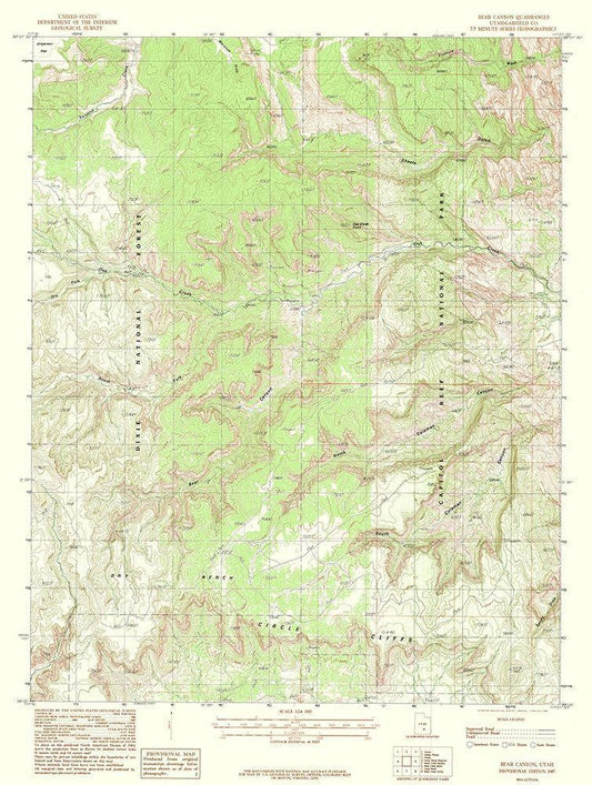 Bear Canyon Utah Quad - USGS 1987 White Modern Wood Framed Art Print with Double Matting by USGS
