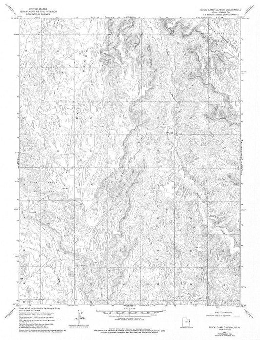 Buck Camp Canyon Utah Quad - USGS 1968 White Modern Wood Framed Art Print with Double Matting by USGS