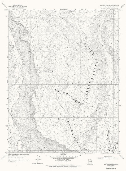Big Pack Mountain Utah Quad - USGS 1968 White Modern Wood Framed Art Print with Double Matting by USGS