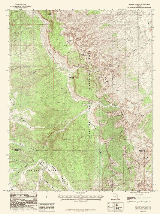 Golden Throne Utah Quad - USGS 1987 White Modern Wood Framed Art Print with Double Matting by USGS