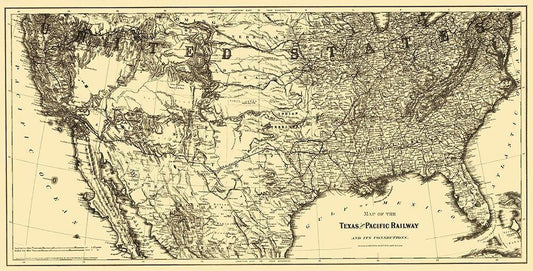 Texas and Pacific Railway - Colton 1876 White Modern Wood Framed Art Print with Double Matting by Colton