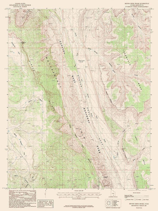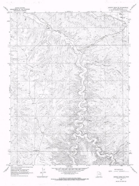 Bitter Creek Divide Utah Quad - USGS 1987 White Modern Wood Framed Art Print with Double Matting by USGS
