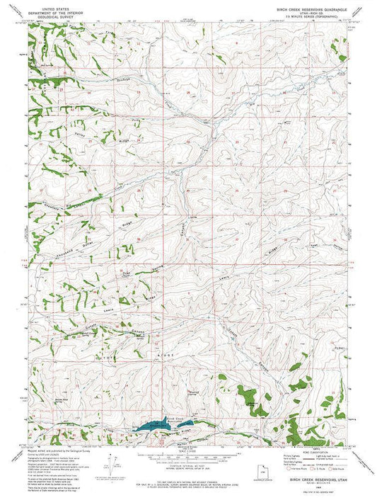 Birch Creek Reservoirs Utah Quad - USGS 1969 White Modern Wood Framed Art Print with Double Matting by USGS