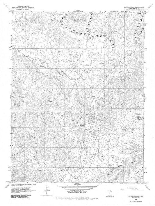 Bates Knolls Utah Quad - USGS 1966 White Modern Wood Framed Art Print with Double Matting by USGS