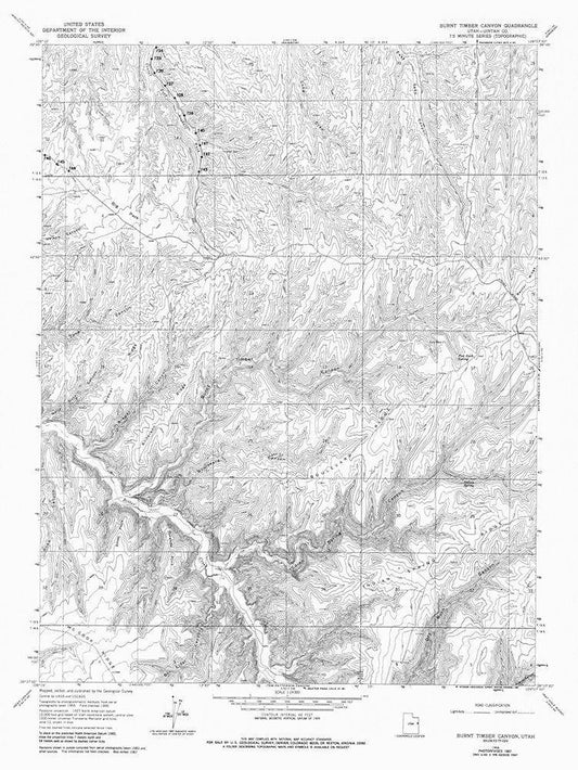 Burnt Timber Canyon Utah Quad - USGS 1966 White Modern Wood Framed Art Print with Double Matting by USGS