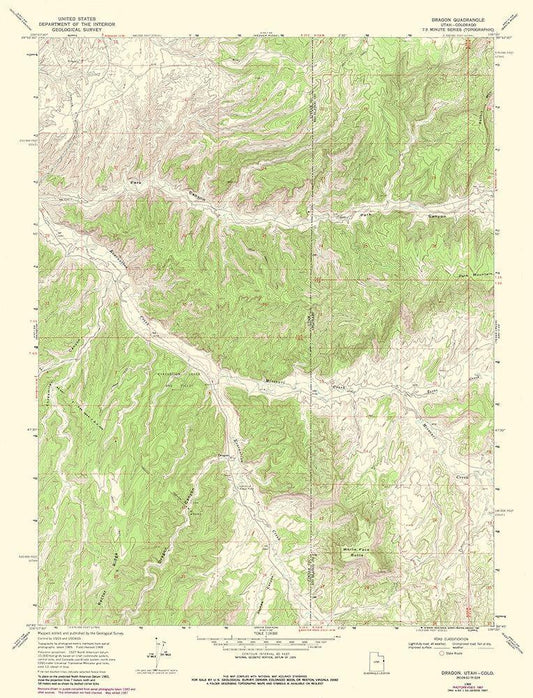 Dragon Utah Quad - USGS 1968 White Modern Wood Framed Art Print with Double Matting by USGS