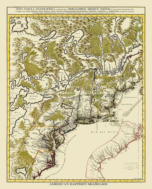 American Eastern Seaboard - 1730 White Modern Wood Framed Art Print with Double Matting by Unknown