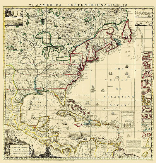 Amerique Septentrionale - Popple 1733 White Modern Wood Framed Art Print with Double Matting by Popple