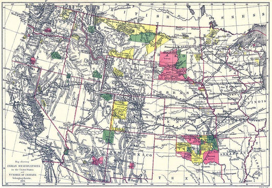 Indian Reservations In the United States - 1898 White Modern Wood Framed Art Print with Double Matting by Bien