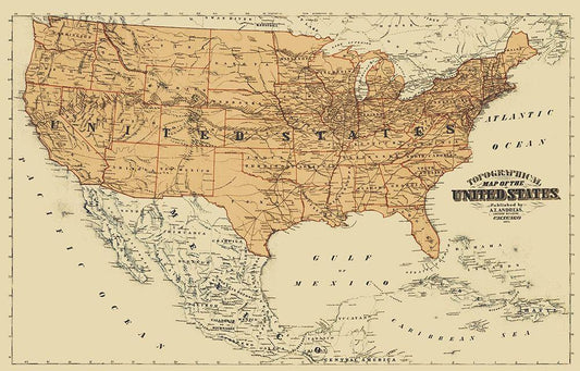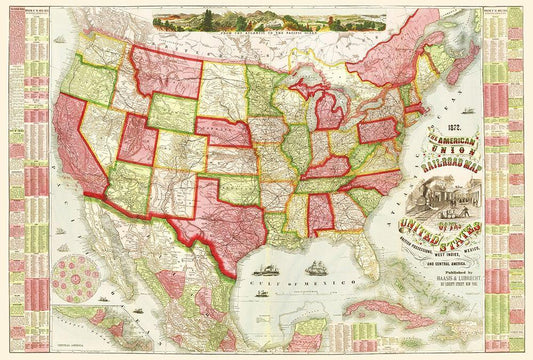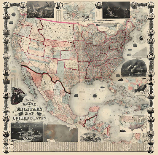 United States Mexico Canada - Andreas 1873 White Modern Wood Framed Art Print with Double Matting by Andreas