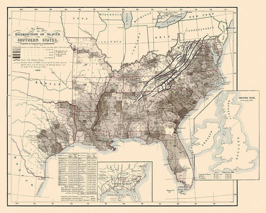 Disributiont of Slaves In the Southern States 1865 White Modern Wood Framed Art Print with Double Matting by Steinwehr