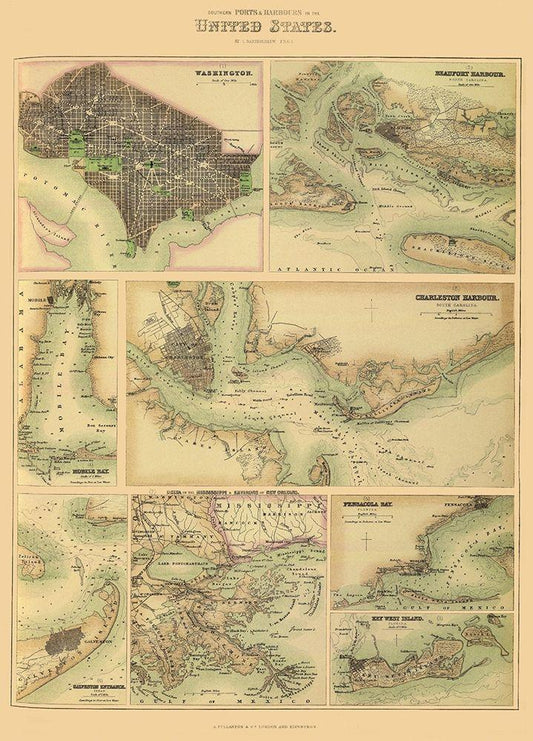 Southern Ports and Harbours In United States 1872 White Modern Wood Framed Art Print with Double Matting by Fullerton