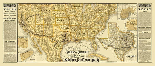 Southern Pacific Railroads, Steamship Lines White Modern Wood Framed Art Print with Double Matting by Poole