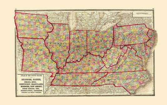 US - Iowa and Missouri - Pennsylvania and Carolina White Modern Wood Framed Art Print with Double Matting by Baltimore