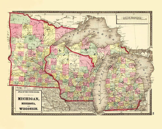 Michigan, Minnesota , Wisconsin - Baltimore 1873 White Modern Wood Framed Art Print with Double Matting by Baltimore