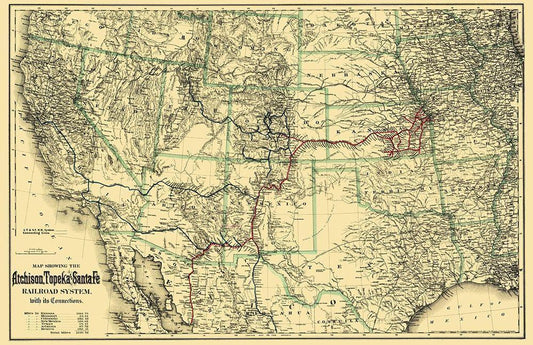 Atchison, Topeka and Santa Fe Railroad System 1883 White Modern Wood Framed Art Print with Double Matting by Colton