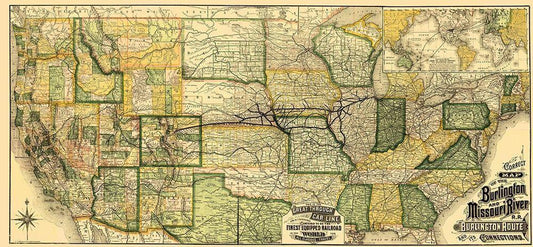 Burlington and Missouri River Railroad 1882 White Modern Wood Framed Art Print with Double Matting by Rand McNally