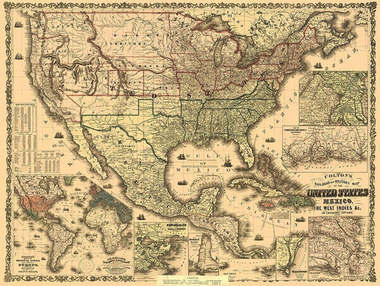 Railroads and Military, US, Mexico, West Indies White Modern Wood Framed Art Print with Double Matting by Colton