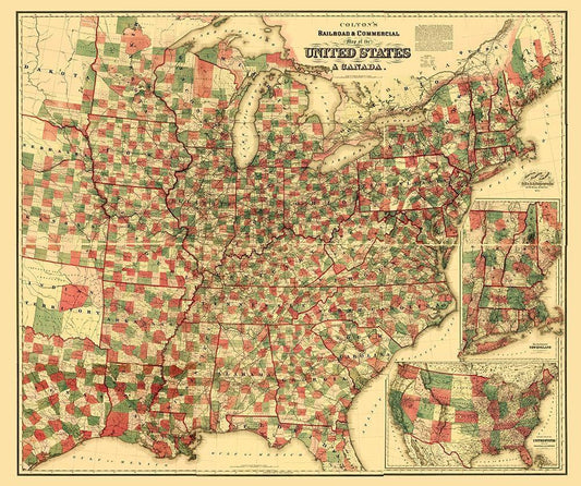 Railroads and Commercial in US, Canada 1871 White Modern Wood Framed Art Print with Double Matting by Colton