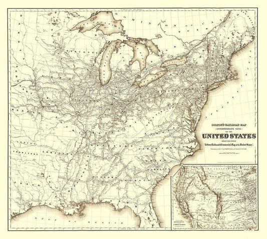 United States Railroads - Colton 1870 White Modern Wood Framed Art Print with Double Matting by Colton